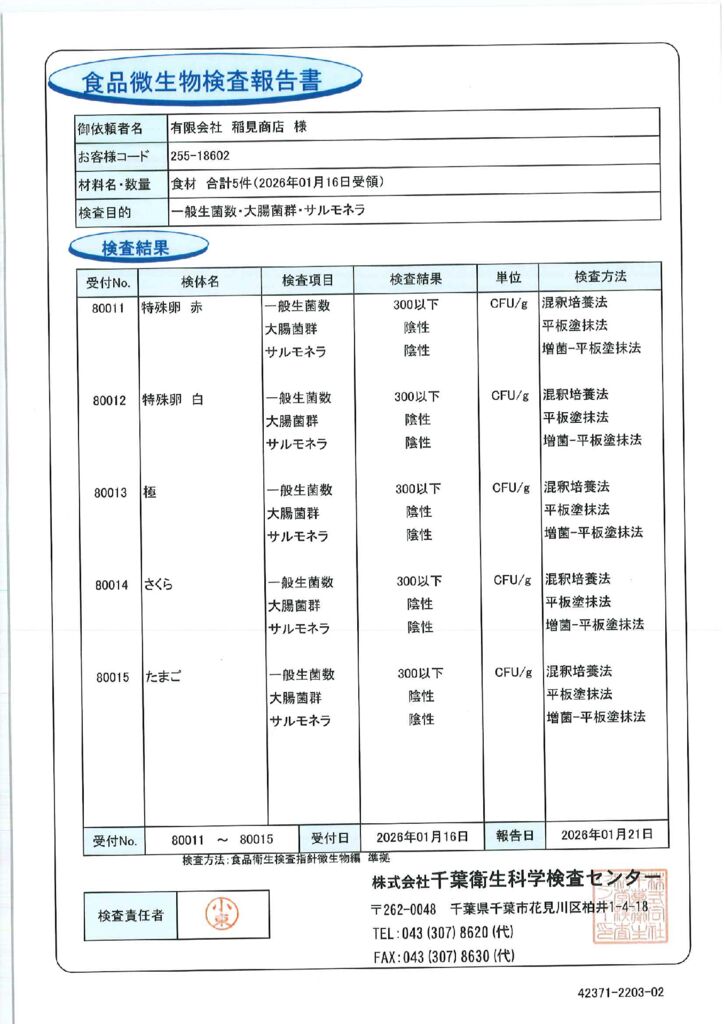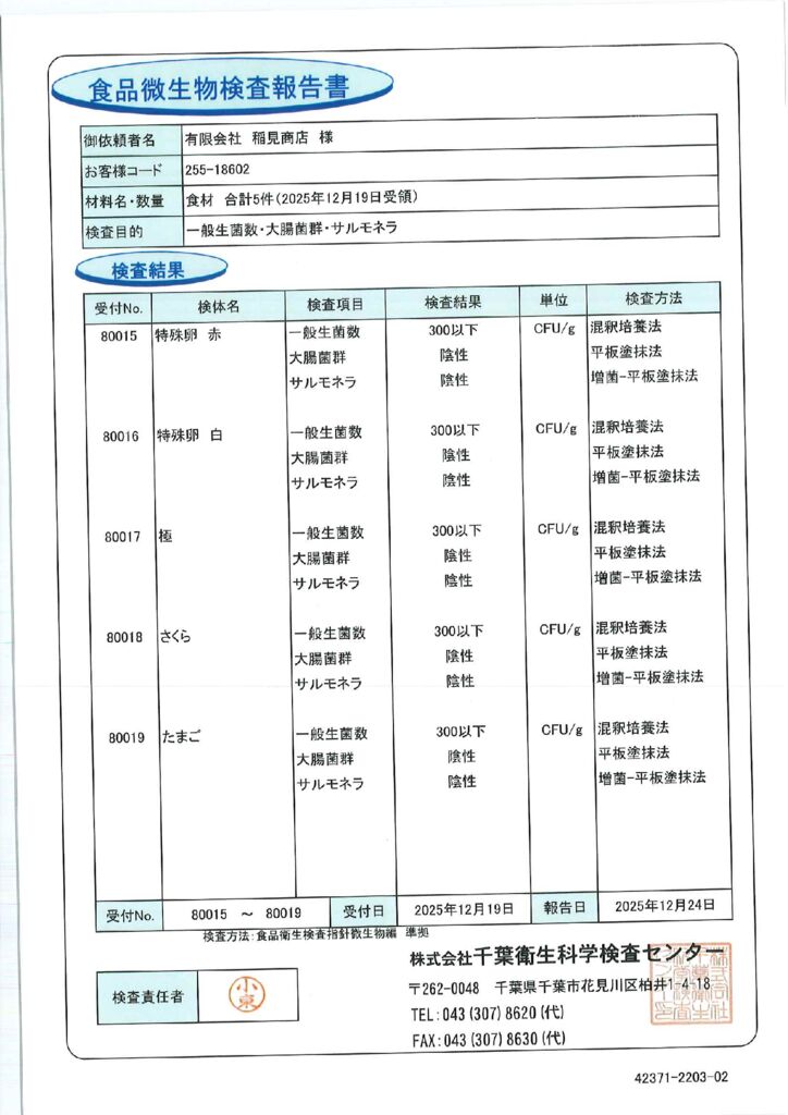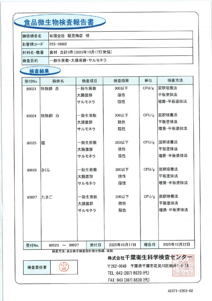 | 卵サイズ | 数量(個) | 平均数量(個) |