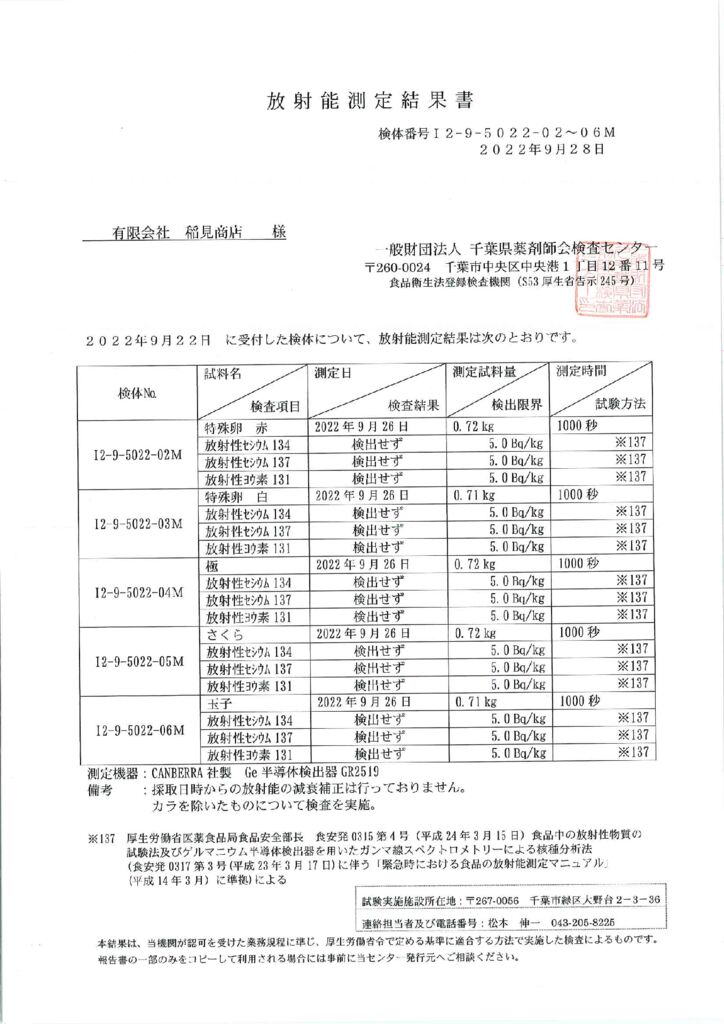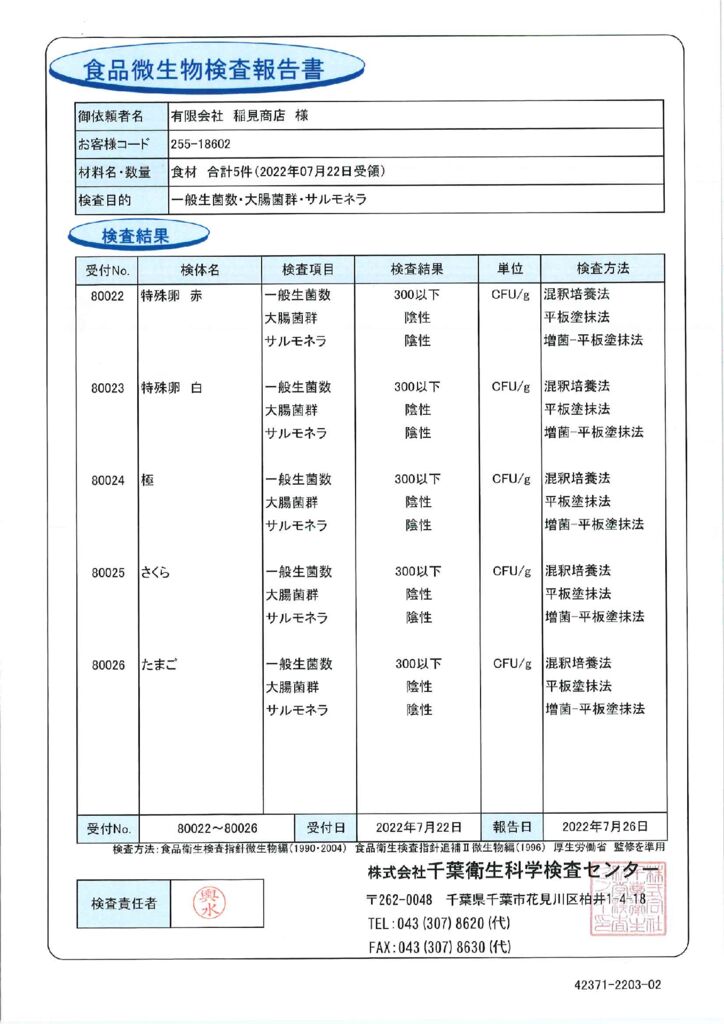 | 卵サイズ | 数量(個) | 平均数量(個) |